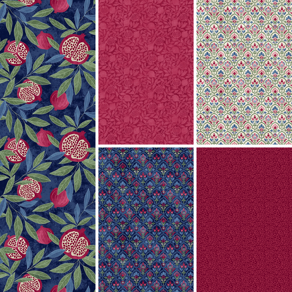 Fat quarter bundle featuring 10 fabrics from the Pomegranate collection