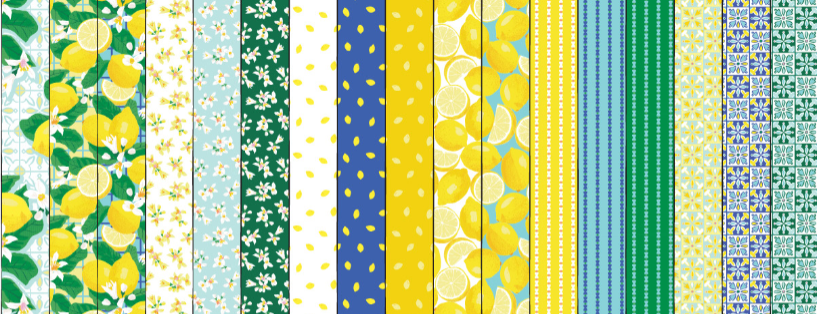 2 1/2 inch jelly roll strip pack includes 42 pieces from the Lemon Drop collection by Gabrielle Neil